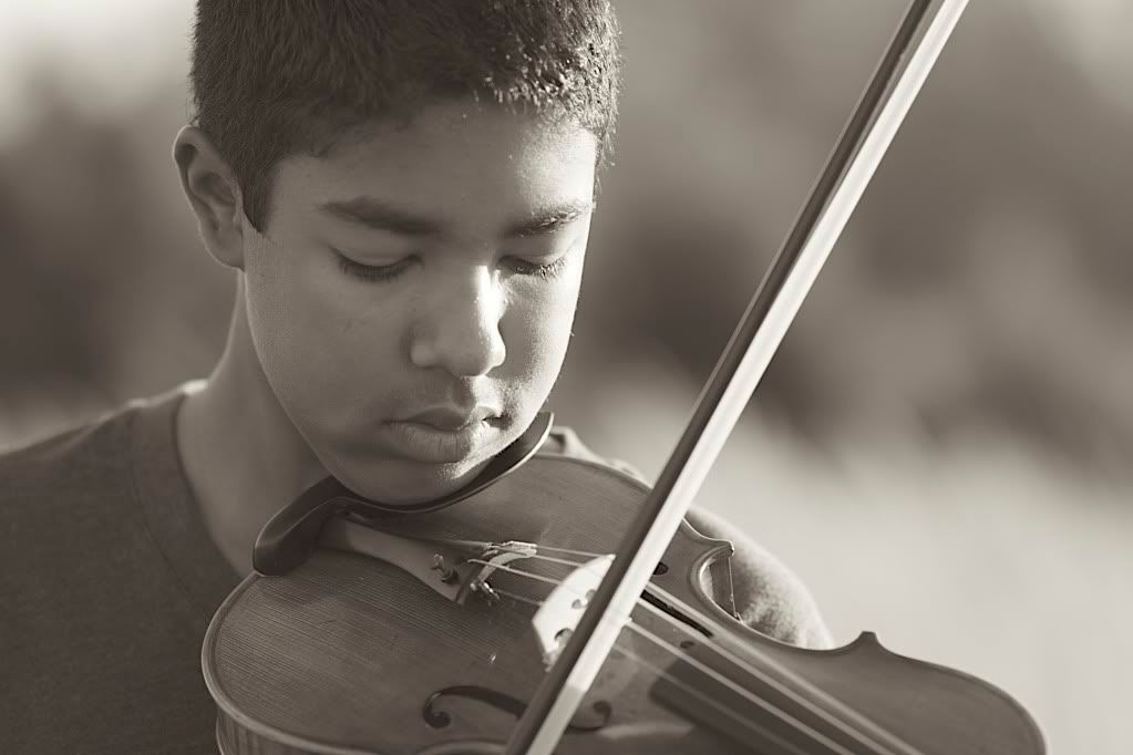 He has been playing piano and violin for several years. I wish I could have gotten a piano into this field but the violin is pretty spectacular.